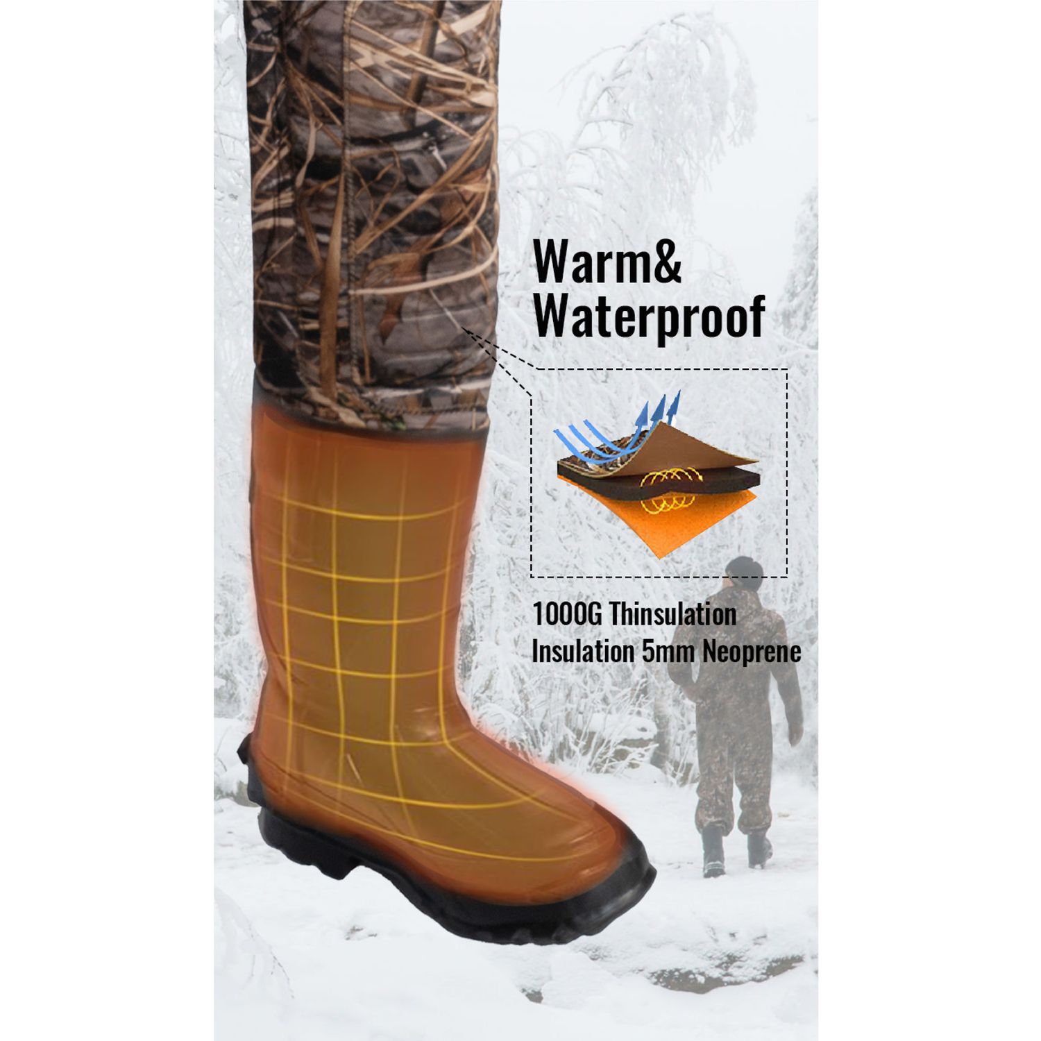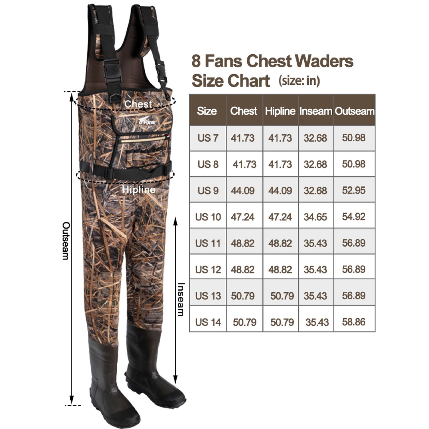 8Fans Hunting Waders, Neoprene Chest Wader, Waterproof Bootfoot Fishing Waders for Men & Women with Boots