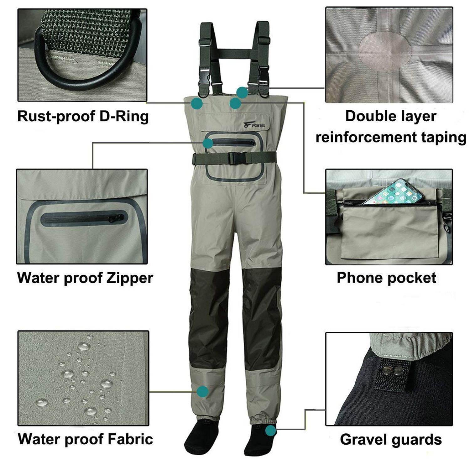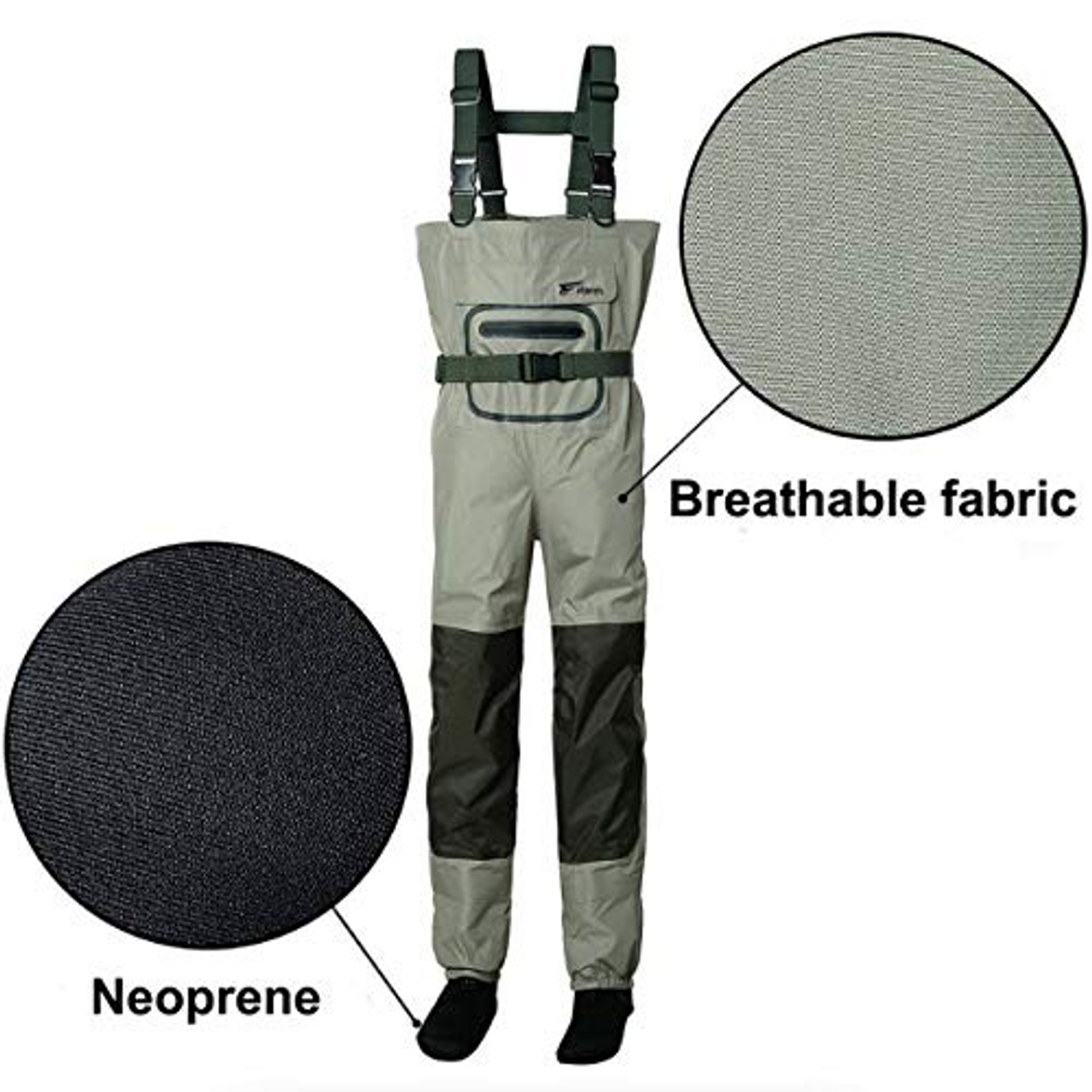 8Fans 3-Layer Waterproof H-Back Neoprene Stocking Foot Fishing Wader