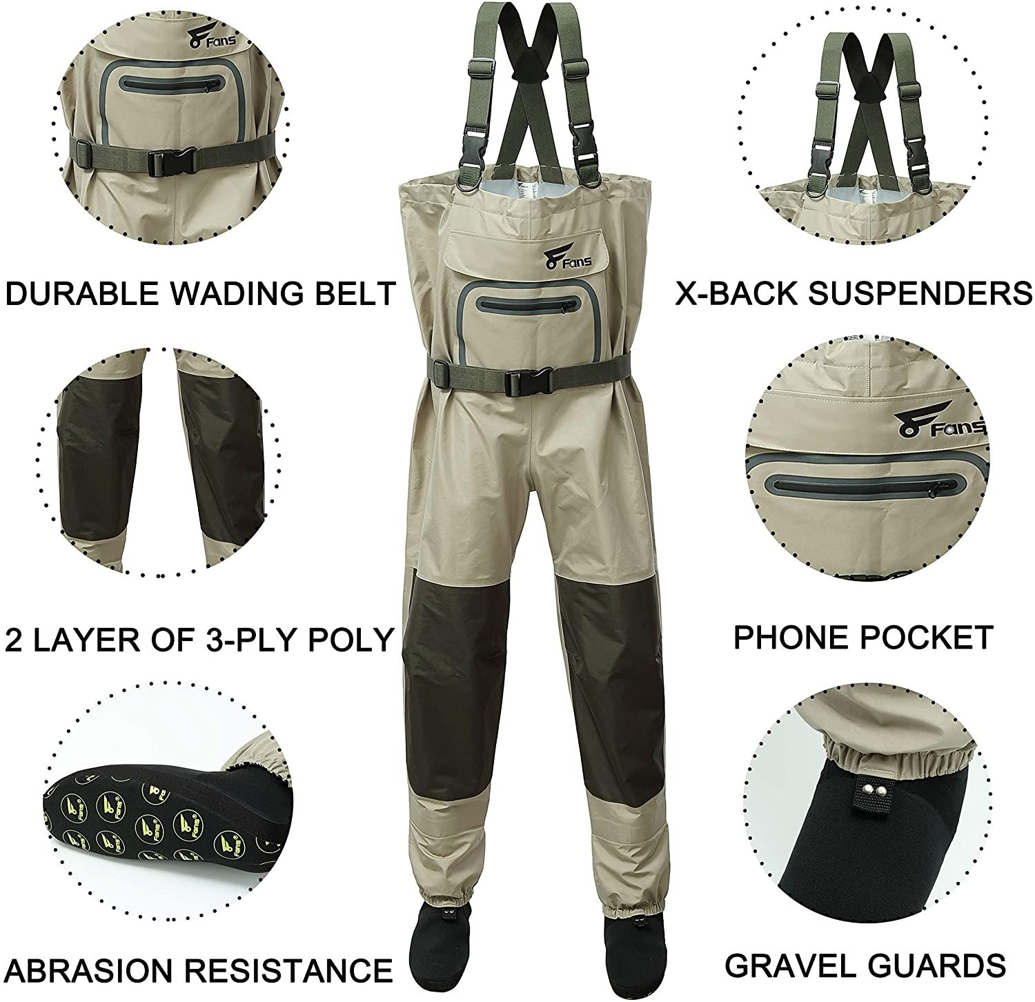 8Fans 3-Ply Breathable X-Back Neoprene Stocking Foot Fishing Wader