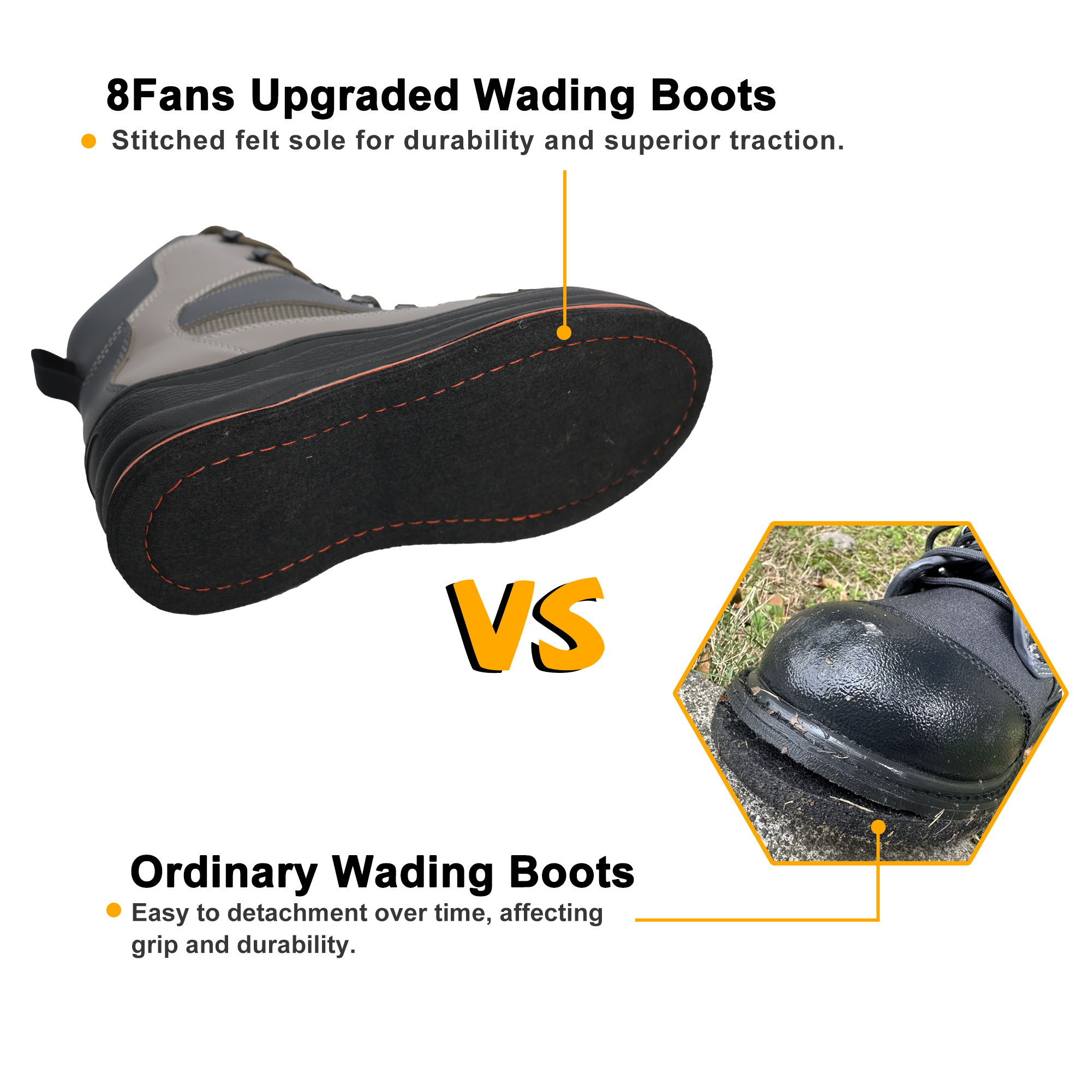 8Fans Men's Wading Boots Non-Slip Felt Sole, Superior Comfort for Anglers, Perfect for Fly Fishing