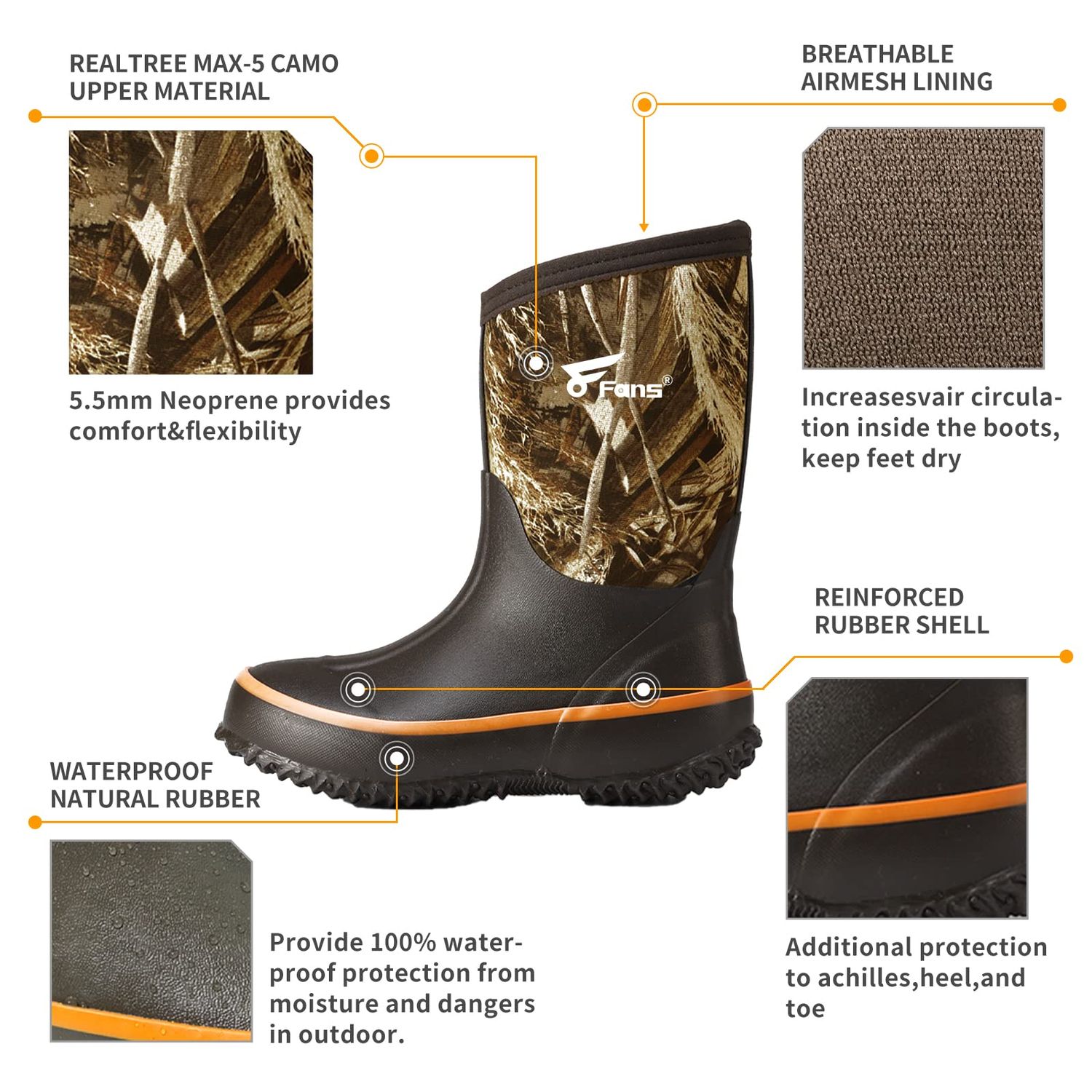 Why Choose 8Fans® Kids' Realtree Xtra Camo Neoprene Boots